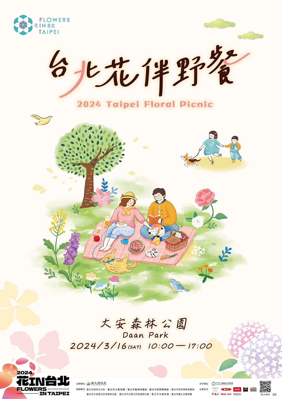 台北市長蔣萬安也在宣傳片中力邀民眾,在3月16日一同參加「2024台北花伴野餐」,在充滿美麗花卉的城市中野餐,感受置身於花園城市的幸福感!心動不如行動,快上網報名參加,與家人、朋友及伴侶共同編織一段春日野餐的美好回憶。