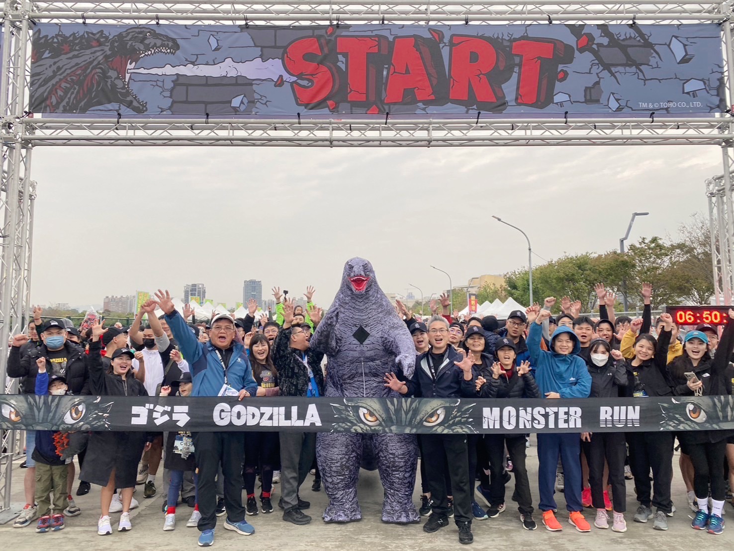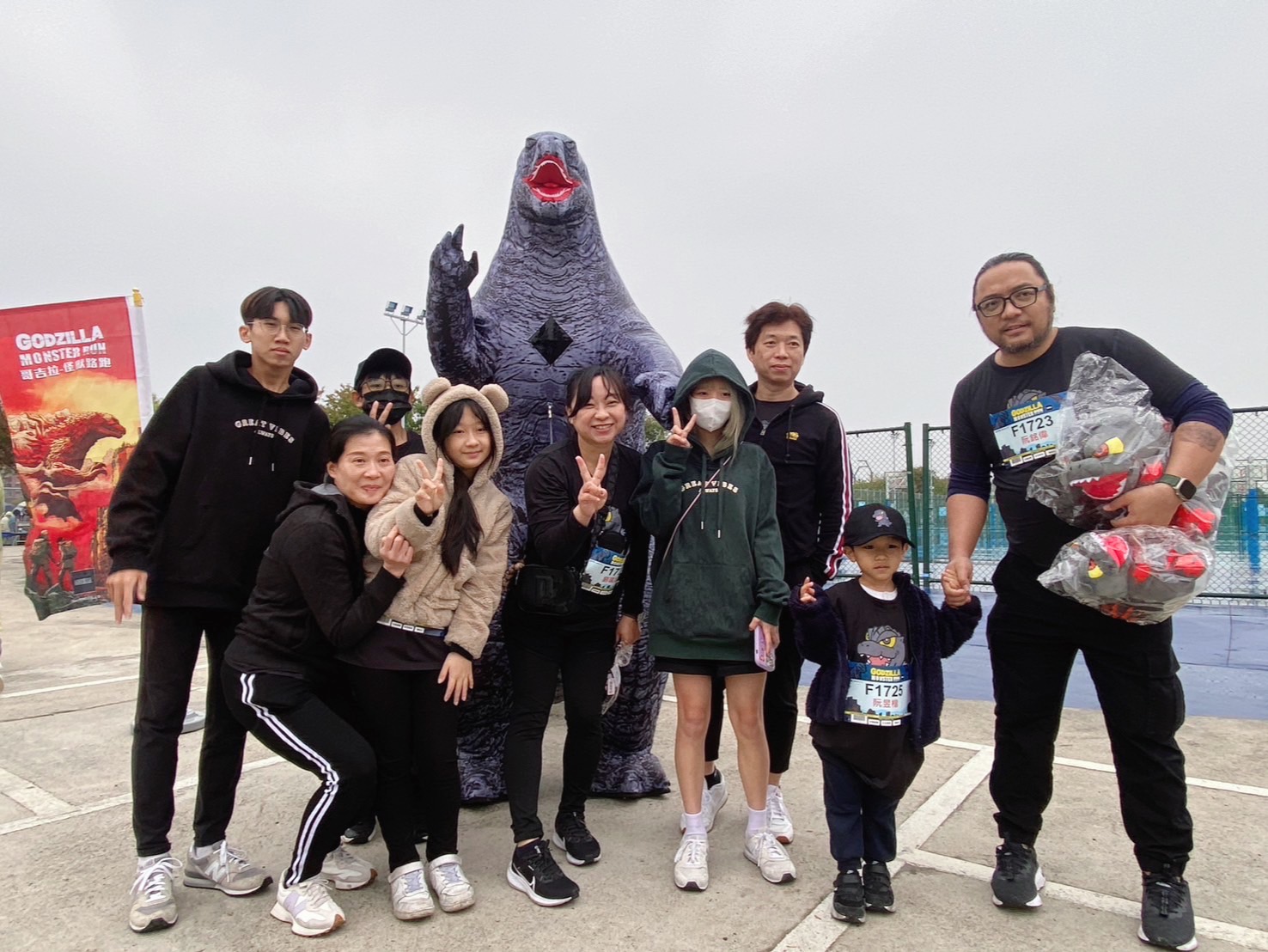 運動局表示,今日路跑不僅有許多親子家庭共同參加外,也有跑友裝扮成超霸氣哥吉拉怪獸供拍照互動,更規劃現場打卡區、客製化獎牌雷雕、互動遊戲等,增添活動趣味性,同時為了響應愛心公益,全統運動特別將賽會運動用品等物資,捐贈公益團體,推廣全民運動與促進社會公益。