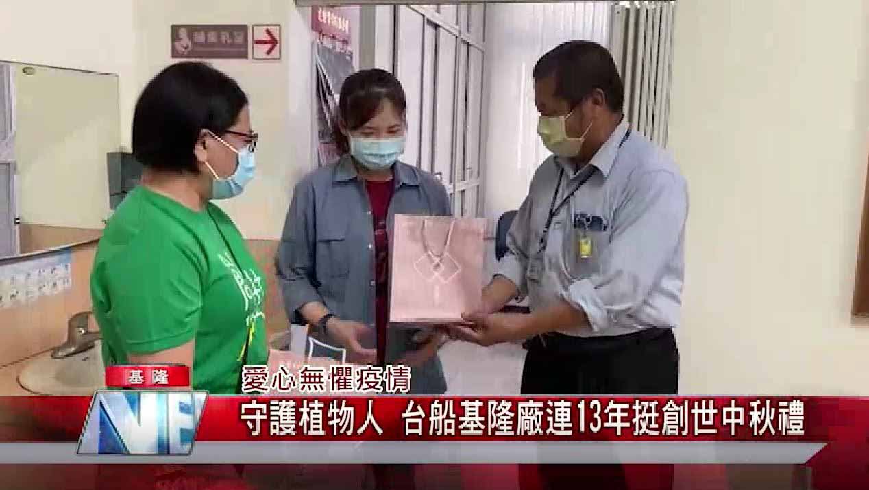 受到疫情影響,弱勢團體善款金額大減,以基隆創世來說,今年捐款就少了一半。不過台船基隆廠員工福利會方面無懼疫情,連續13年認購創世的中秋公益禮盒,除了慰勞同仁辛勞,也希望拋磚引玉,號召更多企業響應,一起來關心無法為自己發聲的植物人。這已經是台船方面連續第13年支持基隆創世義賣的秋節公益禮盒,除了慰勞感謝同仁辛勞外,更希望拋磚引玉,號召大家一起來協助創世照顧植物人。