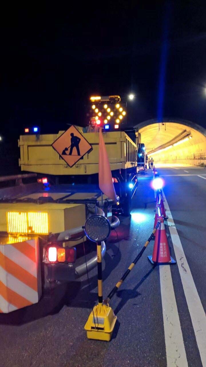環保局說明,為維護北市市容整潔,該局每年均會安排全市9座隧道及8條車行地下道清洗作業,作業期間,該局將封閉作業路段之內外側車道,擺設交通錐、閃爆燈及LED顯示板警示車輛等警示裝備,並出動可吸收撞擊動能的緩撞車輛,以確保用路人及工作人員安全。