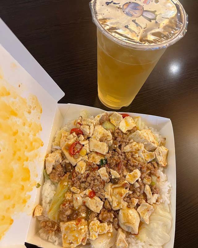從陳冠霖分享的照片可見,他昨天中午吃的是麻婆豆腐飯,雖然只是在飯上面蓋上一層醬,但是豆腐與碎肉相當多,底下還可見到高麗菜,與便利商店一份麻婆豆腐餐要價60元來比,根本就是在做賠本生意,也讓陳冠霖直呼:「萬物齊漲!老闆佛心來著⋯⋯」