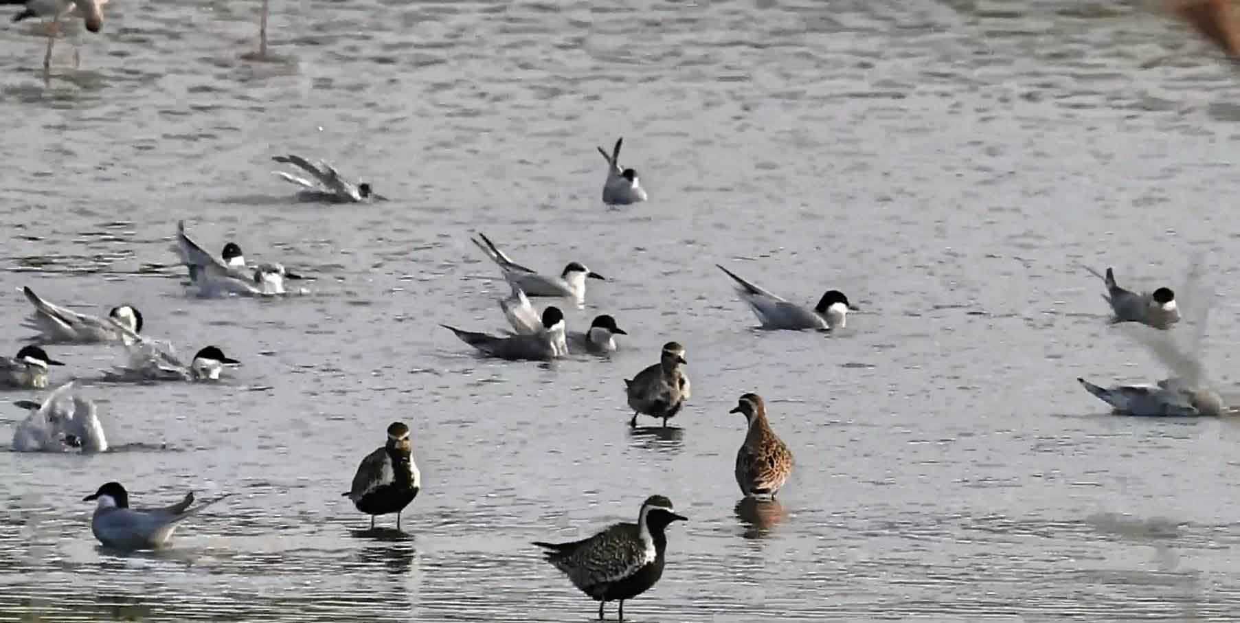 鷗嘴燕鷗為稀有種冬候鳥或不普遍過境鳥,外型頭黑、身體白、嘴黑,喜歡單獨在河口濕地、泥灘、潟湖及水田等地區活動,並以昆蟲、蚯蚓、小魚等為食。白翅黑燕鷗在台灣是普遍的過境鳥,外型是頭部和身體為黑色、鳥喙暗紅,飛行能力極佳,可在空中捕捉獵物,常在水面定點飛翔。