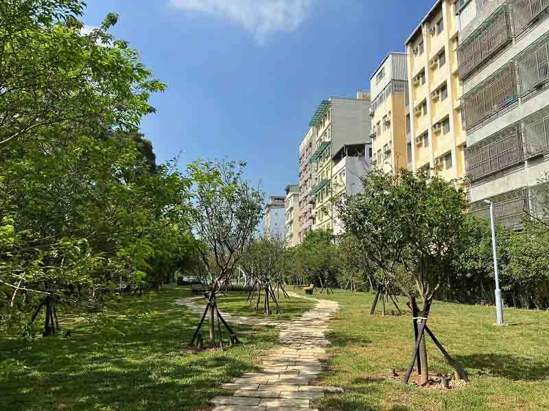 林智堅表示,感謝世界先進公司2019年起認養櫻花公園、復育環境生態,且積極與市府、當地里長密切合作,本次改造選定以青剛櫟為主、櫻花樹為輔,為老舊公園換新裝。