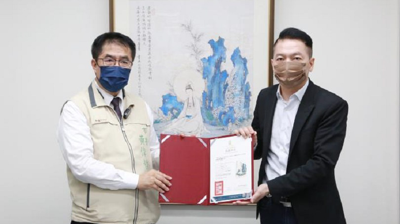 夏荊山大師的〈青石觀音〉今日上午先於民治市政中心揭畫,下午夏荊山文化藝術基金會在趙執行長的率領下,也前往永華市政中心市長室,與市長黃偉哲一同為〈金禧大千觀音像〉揭畫。