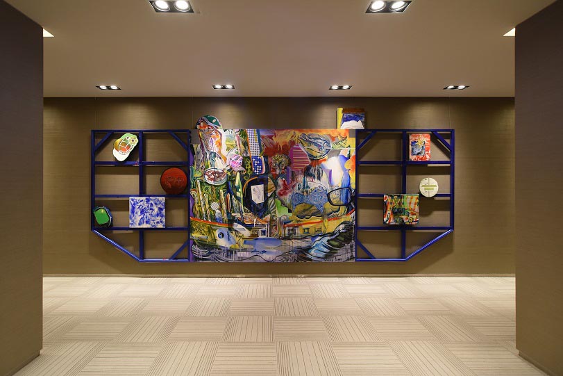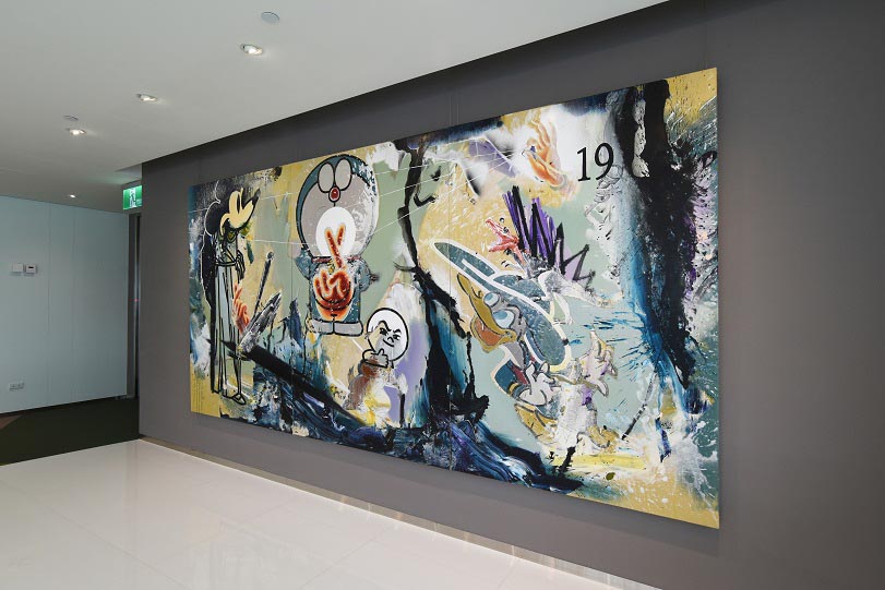 蔡宜儒《美好時光之無煙硝NO.19戰役》以卡漫角色、通訊軟體貼圖等童趣圖像,隱喻疫情的無常,巨幅作品在跨棟辦公空間的必經之路,極為醒目;謝牧岐繪畫裝置《戎克船上的靜物場景》、蘇煌盛水墨作品《今宵多珍重》也展示於不同辦公區域,讓中國信託員工能浸潤在當代藝術的氛圍,對作品產生興趣、甚至引發共鳴。藝術家蘇煌盛表示,「中國信託當代繪畫獎」證明了,在這個時代,繪畫仍有很多的活力及可能性,「企業典藏有別於公家機關或私人典藏,會以更多方式呈現,能藉此拉近藝術、商業、不同文化社群的關係。」
