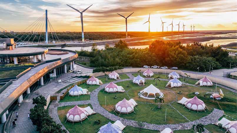 高美濕地露營區今(7)日開幕!台中市政府建設局委外經營團隊打造海景露營場,結合高美濕地得天獨厚的自然景觀,以濕地為主題的生態露營區,為海線地區再增一處海景住宿體驗場。建設局表示,露營場位於高美濕地遊客中心前,只要一卡皮箱即能輕鬆入住享受露營野趣,欣賞高美濕地的絕美夕陽,並透過生態導覽深入瞭解濕地生態及生態保育重要性。