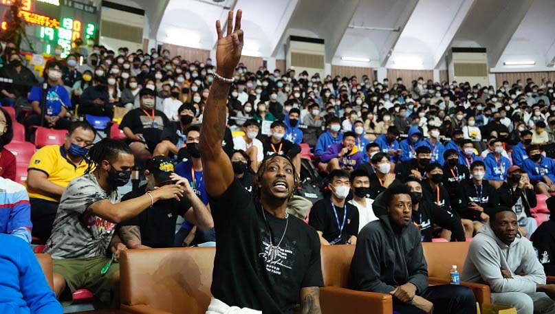 桃園永豐雲豹職業籃球隊今(30日)全隊前往輔仁大學中美堂,觀看111學年度UBA大專籃球聯賽公開男一級預賽,以實際行動支持學生籃球,賽前許多學生為一睹超級球星霍華德(Dwight Howard)風采,還特地提早排隊進場,也擠滿了輔大中美堂,場面相當熱烈。