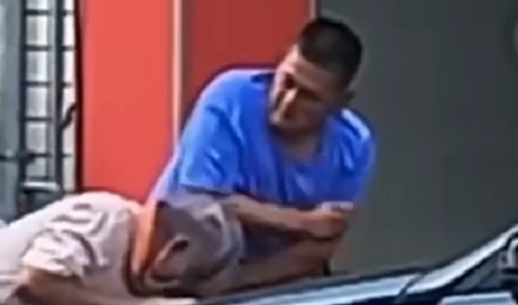 從網路上曝光的影片可見,駕駛同行友人連忙將刀子從他手上抽走,但他依舊怒氣難消,直接用拳頭往阿伯的頭上揮過去,雖然第一下只將對方的帽子打掉,但下一拳卻是直接精準命中阿伯的頭,隨後他又將阿伯壓在地上,在一陣扭打之際,他的褲子直接滑落,屁股蛋就這樣攤在外面給人看光光。