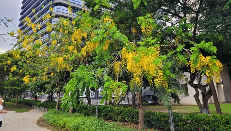 阿勃勒的花語是「金色之戀」,市民朋友們,不妨撥空就近到公園、街上走踏,與阿勃勒來場金色之戀,欣賞夏季限定的專屬黃金雨,當陽光灑落枝頭,經過也能擁有好心情!