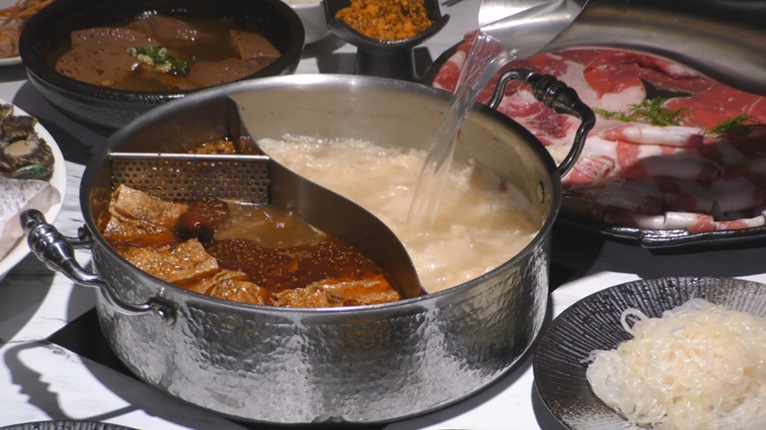 ▲獨具特色的麻辣與酸菜白肉鴛鴦鍋是眾多聚餐場合的首選。
