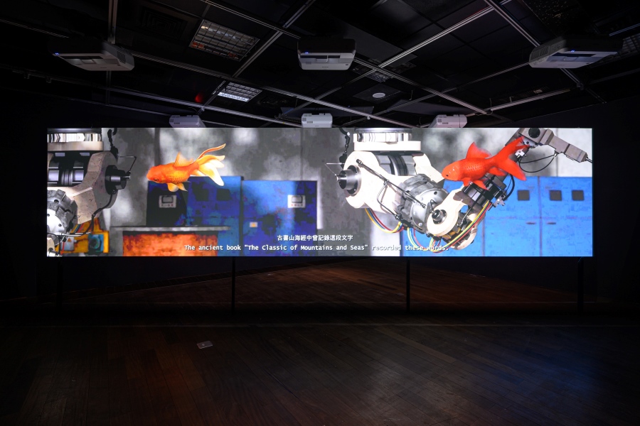 在2023年獲頒日本首屆人工智慧藝術賽(AI Art GrandPrix)大獎肯定的日本藝術家松尾公也展出兩件作品。《妻音源Torichan 歌唱 Desperado》以人工智慧技術重新生成已逝世妻子的演唱聲音及影像,展覽現場也播放另一件藝術家持續運用各式AI程式製作以妻子為主角的音樂影片《星沉願望夜》,呈現藝術家跨越生命與時空持續與妻子相互對唱的動人場景。