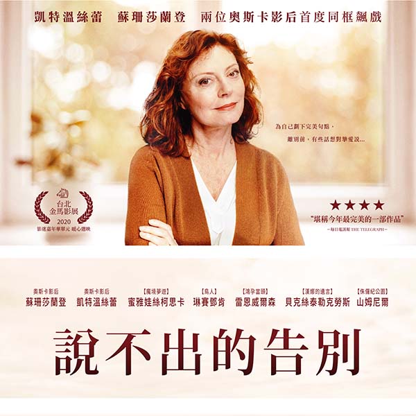 凱特溫絲蕾催淚新片,百變女王蘇珊莎蘭登內斂動人演技,蜜雅娃絲柯思卡真情流露,兩位奧斯卡影后首度同框飆戲,《說不出的告別》激出觀眾眼淚!2020金馬影展影迷嘉年華單元 暖心選映!