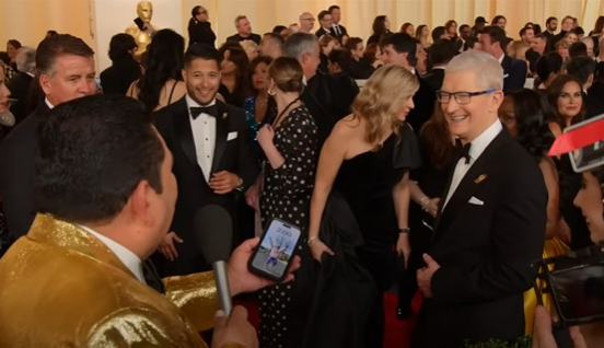 ▲季勒摩亂入紅毯,連蘋果CEO也被鬧場(圖/Youtube「Jimmy Kimmel Live」)