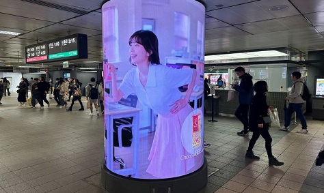 臺北捷運即日起在捷運中山站推出「圓柱LED電子螢幕」,高解析度及高色彩的數位廣告螢幕,吸引路過旅客目光,「閃亮」效果更成為親朋好友相約的新潮會面點;此圓柱螢幕為臺北捷運首次應用,不但有效節省廣告紙使用,同時讓資源重複循環利用,落實綠色運輸,環保永續的ESG理念。