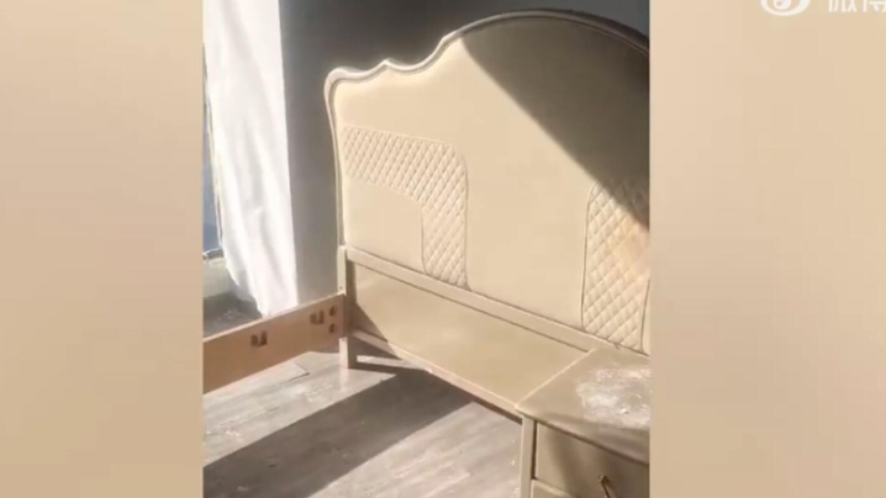 ▲女子臥室只剩床架,連床墊都被風吹走。(圖/百度)