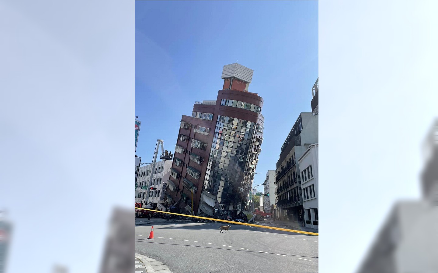花蓮縣花蓮市市長魏嘉彥稍早在臉書貼出天王星大樓救援畫面,他表示坍塌最嚴重的是位在軒轅路及中山路口,石來運轉對面的天王星大樓,傾斜約30度,直到現在還在救援中,但建築物本身相當危險。