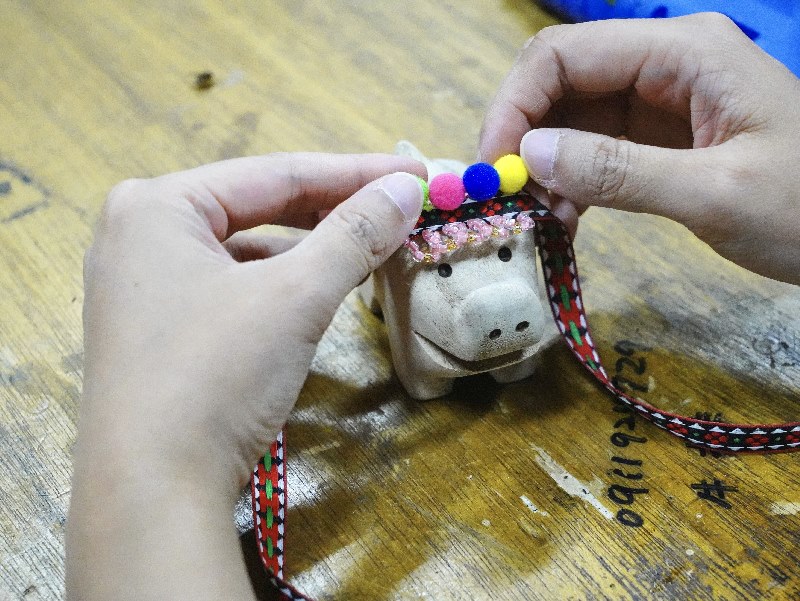 工作室擺放著大大小小極富巧思設計的皮革作品,老師還會介紹鄒族鞣皮技術、皮雕手法,想要更有紀念性就自己做一個,選好可愛圖案金屬印章,也有英文數字能拚出自己名字,再對著皮革敲敲打打,最後由老師幫你上色,一條專屬你的皮革鑰匙圈就完成,過程充滿樂趣又療癒;喜歡手作皮雕還能到山美部落的「達娜伊谷自然生態公園」不僅能觀賞鯝魚,還能做鯝魚造型的鑰匙圈。