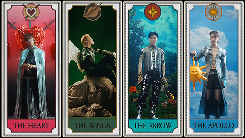 有趣的是,影片裡出現的四張咒語卡分別為「The Heart」、「The Wings」、「The Arrow」、「The Apollo」;前三者恰好是愛神邱比特的經典元素,而在希臘神話裡,邱比特曾對太陽神阿波羅射了一箭。〈Spell〉的卡片順序充滿巧思。先有一顆心,以翅膀飛翔,再把箭矢射向阿波羅;有情人終成眷屬,尾聲出現一對又一對的戀人。