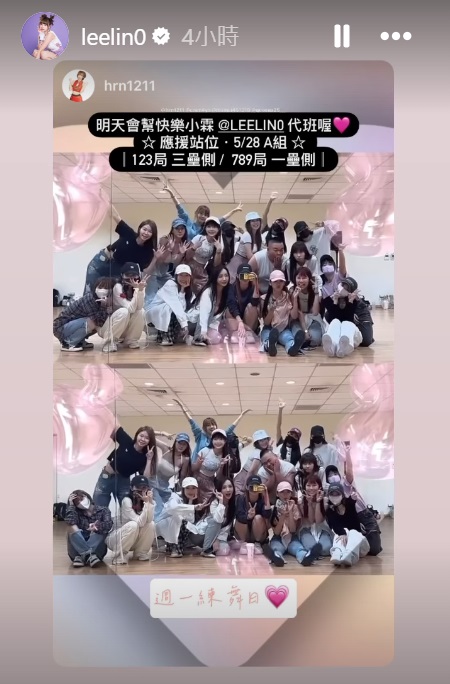 不過就在這起事件爆發的同一天,霖霖稍早卻在IG轉發一則動態,表示明天的應援班,會由寧寧代班,這樣的操作不禁令人好奇,是否是為了林庭謙事件而避風頭,但根據媒體報導,班表的更換,為了要跳舞,所以通常不會動得那麼臨時,應該不會是臨時找人代班的。