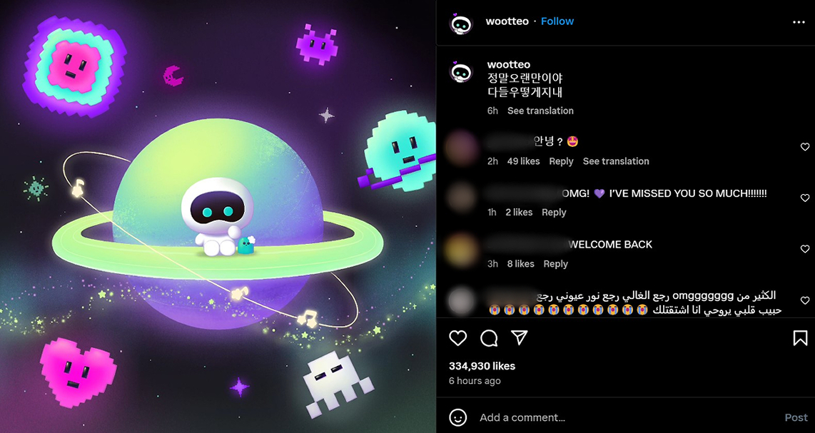 ▲Wootteo向大家打招呼(圖/Wootteo IG)