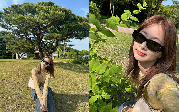 子瑜在貼文旁邊註記「由我爸爸拍的」,而當時的好天氣也讓她逗趣地說「維他命 D 補充完畢」,並在結尾貼上小小黃色愛心,和自己的打扮相呼應。她也分享與花朵的合影,戴起墨鏡的子瑜看起來更成熟了些,呈現截然不同的風格。