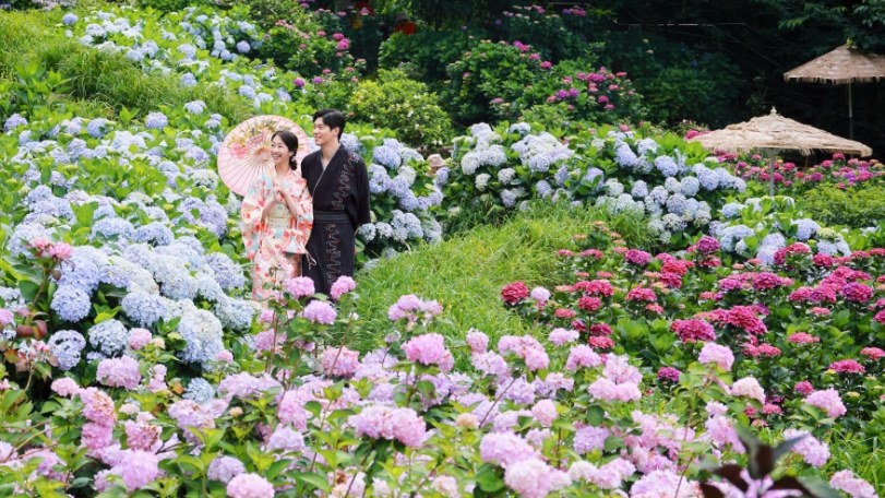走進繡球花海 和服美照拍不停