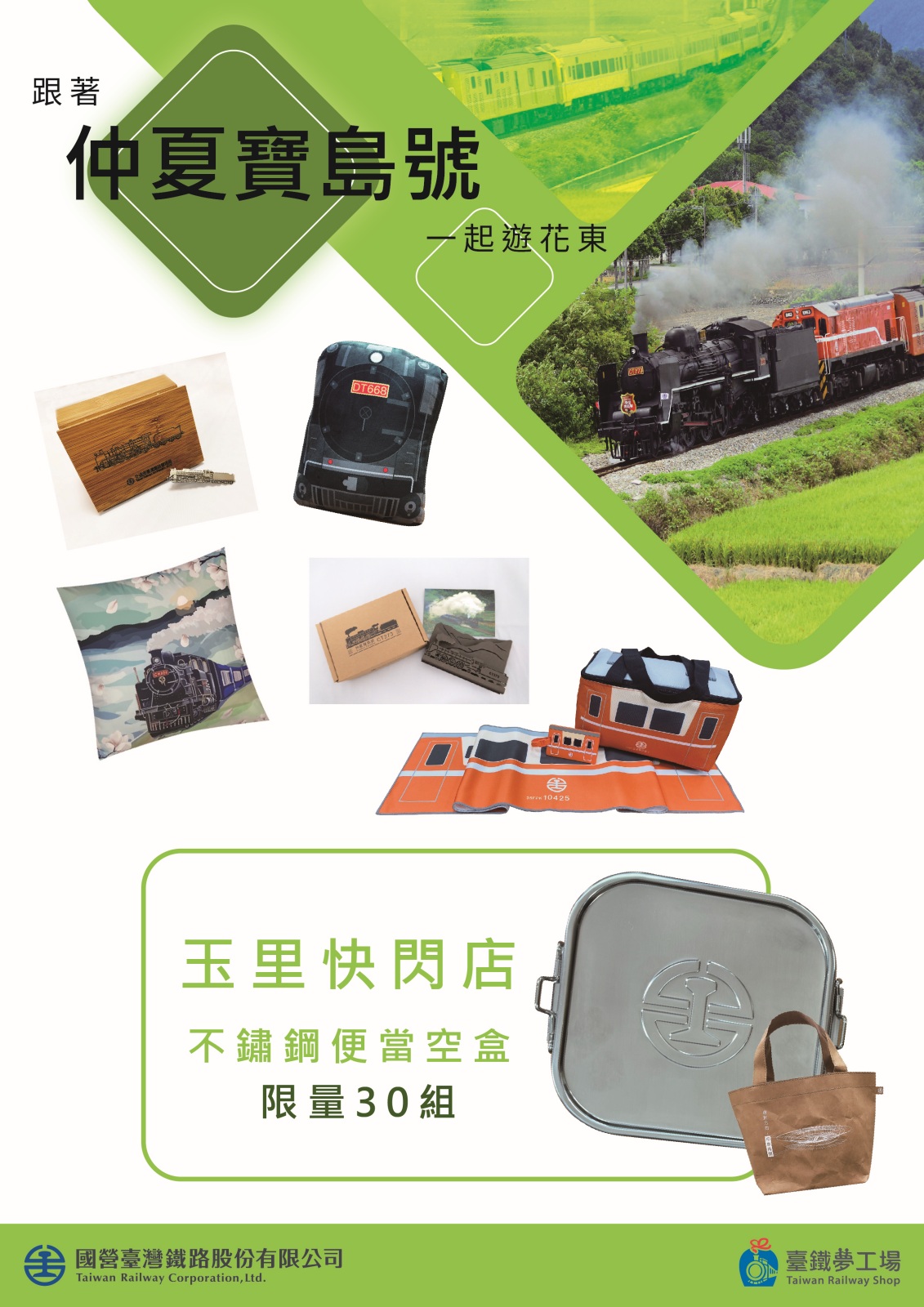 為振興花蓮地區觀光特別於首航當日,於玉里車站快閃店限定販售,「簡約工字軌316不鏽鋼方型便當盒」售價650元,免費贈送扇庫停車再開提袋(原價299元),超值優惠只有限量30組,您絕對要把握機會!