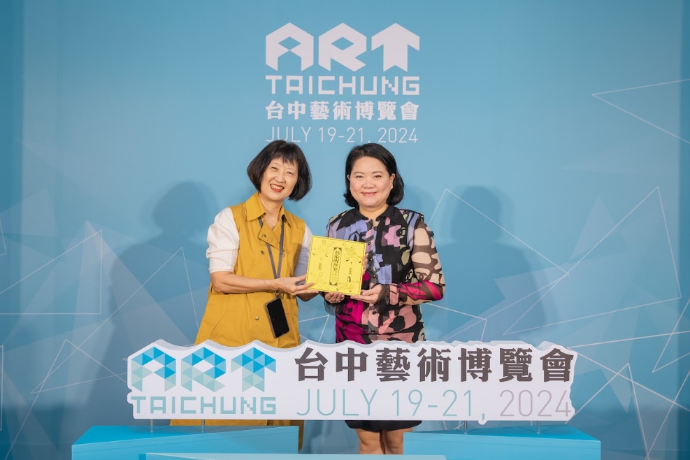 ▲臺灣美術基金會執行長林平致贈即將出版的新書給畫廊協會理事長陳菁螢(圖/中華民國畫廊協會提供)