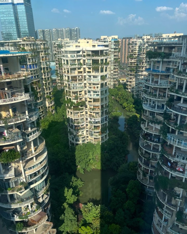吳彥祖昨天發了一張大陸成都一個社區從高樓層拍下的照片,寫下「幾週前我在成都,我不停地看著飯店房間對面的這些公寓大樓。他們都有巨大的陽台,上面生長著很多植物。每個業主都有足夠的空間在陽台上建造額外的房間。下面還有一個湖和很多樹木和綠地。」