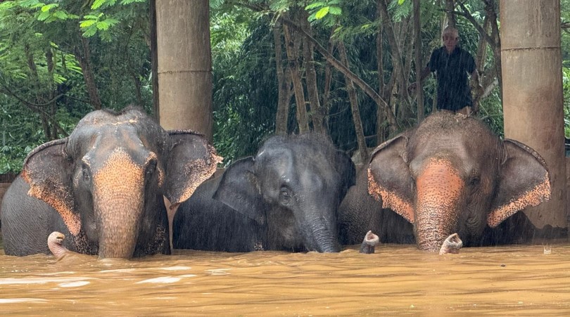 近日山洪席捲了清邁的大象自然公園(Elephant Nature Park),迫使約100隻大象與數十名遊客緊急撤離,網路上充斥著來自園區的影片,數十隻大象浸泡在淹到腹部高度的泥水中,在園區工作人員指引下,試圖涉水到地勢較高的地方避難。大象自然公園創始人桑杜安(Saengduean Chailert)表示:「這是有史以來經歷過最嚴重的一次山洪,水位迅速上漲,迫使園區進行最大規模的疏散行動。」