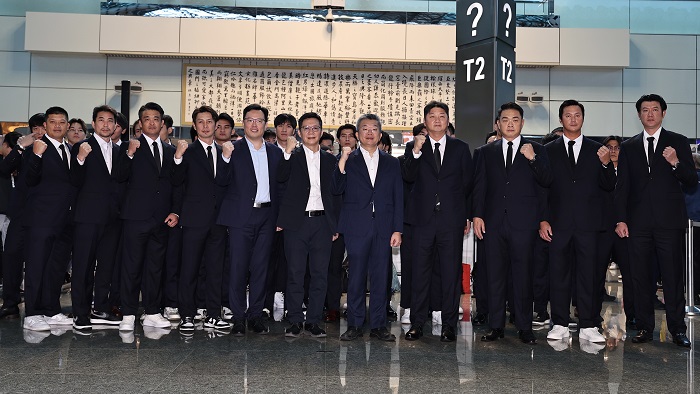 世界棒球12強預賽已落幕,中華隊在B組預賽排名第二晉級複賽,今(19)日中華隊穿著西裝來到桃園機場準備啟程前往日本東京,中華隊將全力以赴拚戰到底,目標拿下每場勝利,並奪下12強賽事冠軍榮耀!