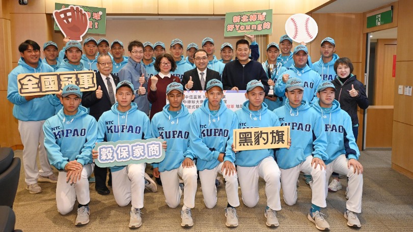 新北市穀保家商青棒代表隊勇奪「2024年中信盃第 12 屆黑豹旗全國高中棒球大賽」及「113學年度高中棒球硬式鋁棒組聯賽」雙料冠軍,青棒隊特別帶著2座冠軍金盃於今(18)日在市政會議獻獎,將奪冠的榮耀與喜悅和市民分享,侯友宜頒發培訓金100萬元,鼓勵球員及教練團隊優異表現!
