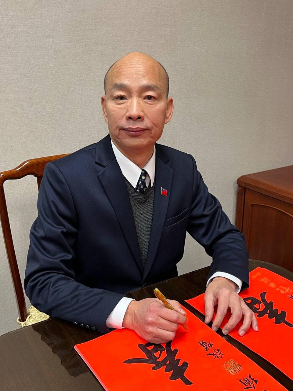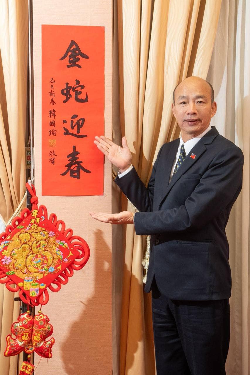立法院長韓國瑜蛇年簽名春聯來了!他今天(1/10)下午在臉書公開春聯內容「金蛇迎春」,並公開了領取地點,想要韓國瑜春聯的朋友快去領取!