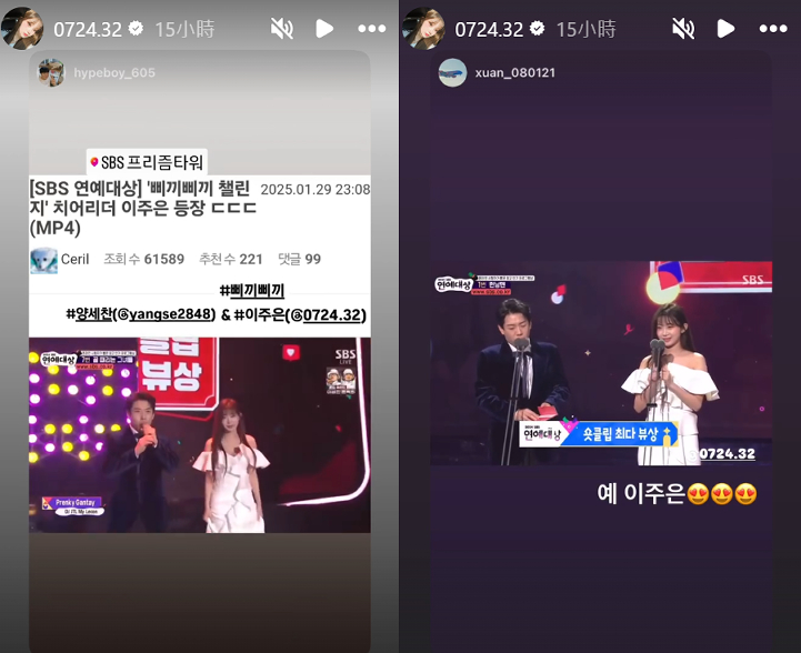 ▲李珠珢於SBS演藝大賞(圖/李珠珢IG限動)