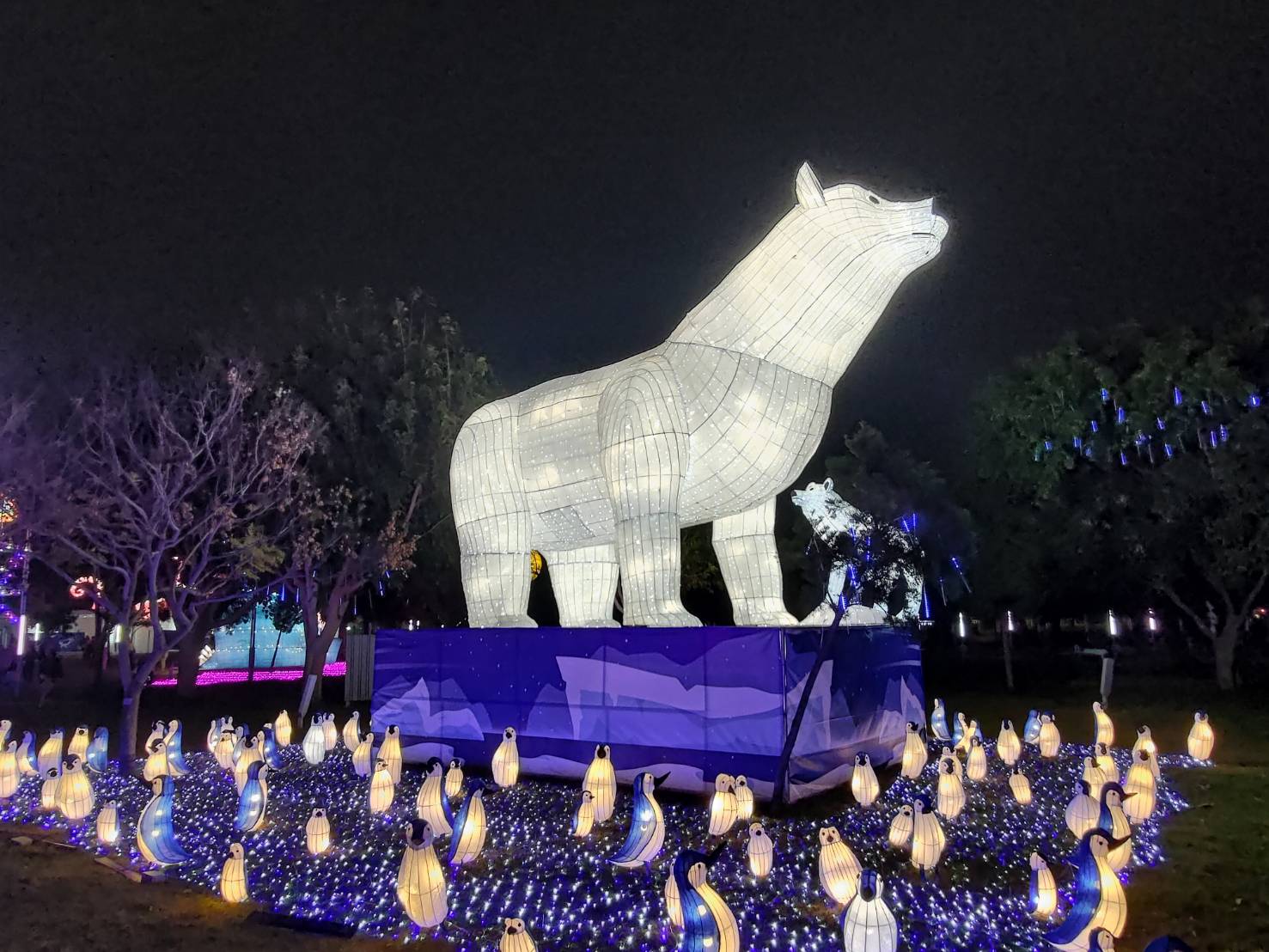 南極企鵝遠征,北極生態界線會消失嗎?在「海洋奇幻冒險」燈區「冰晶守護者」北極熊與南極企鵝,以可愛逗趣的模樣現身,象徵極地生態的變遷與生存挑戰。牠們的到來,不僅讓魔樹之眼與逃跑章魚感到慰藉,也讓遊客們議論紛紛。隨著氣候變遷與海洋污染問題日益加劇,南北極的界線正變得越來越模糊,極地生物的棲息地逐漸受到影響,甚至迎來翻天覆地的生態變化。台中市政府農業局期望透過這場燈會喚起民眾對生態環境保護的關注,共同守護珍貴的自然環境資源。
