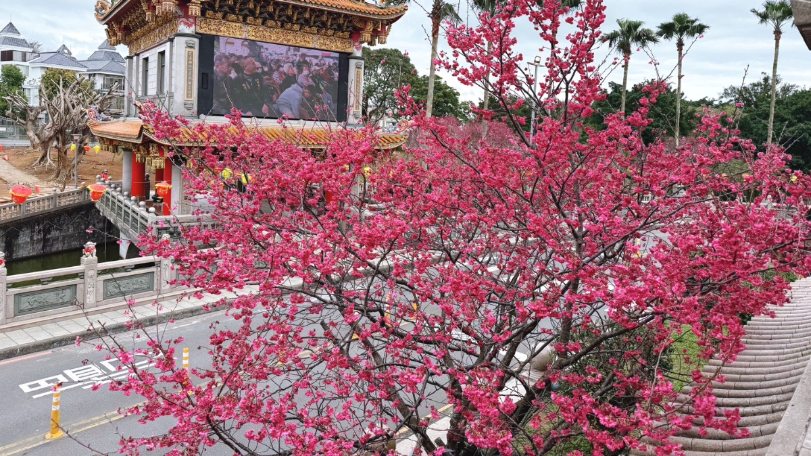 隨著春天的腳步悄然來臨,林口竹林山寺(竹林山觀音寺)周邊的櫻花已逐一綻放,吸引不少的市民朋友前來欣賞這片桃粉色的浪漫美景。新北市景觀處表示,竹林山寺不僅是當地著名的宗教聖地,其四周種植的櫻花更是春季不可錯過的賞花景點。