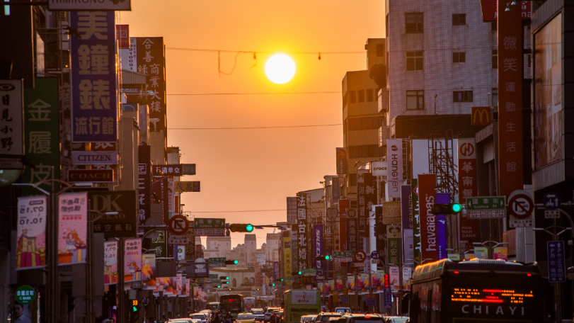 想欣賞絕美的「曼哈頓懸日」不用出國,在嘉義市就能一睹難得一見的美景。嘉義市棋盤式的街道分布和紐約曼哈頓相似,創造了觀測懸日美景的絕佳位置。根據中央氣象署的懸日預報,今年懸日最佳的欣賞時間為3/11下午17:41至18:01,在文化路以西的位置,其後夕陽逐日較前1日提早約4分鐘運行到達街道中心。