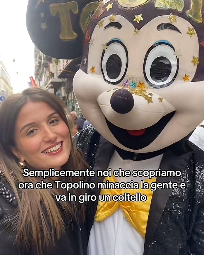 不少遊客到了歐洲,都會擔憂自己的財物在當地遭到偷竊,在不知情的情況下被小偷給扒走,不過現在除了擔心小偷,還要防止那種明目張膽的搶劫!最近有人就發現,在義大利觀光勝地拿坡里時,有一隻米奇人偶會出現在遊客身邊拍照,但在拍完照後,他便會亮出刀來要遊客給錢,可以說是相當可怕。