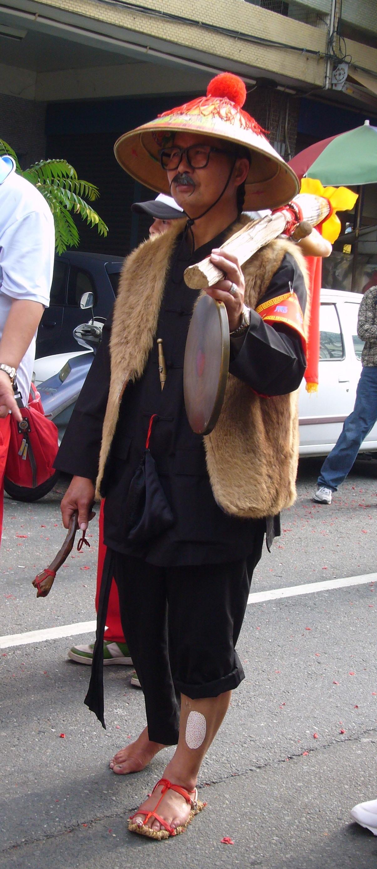 ◎紅纓帽:為笠帽,清朝尖哨兵所戴的帽子,報馬仔戴上此帽後,期望能體認軍令如山、軍紀嚴謹,擔任者應嚴守崗位,認清本份,不可怠慢。戴在頭上是頂天立地,負責盡職。