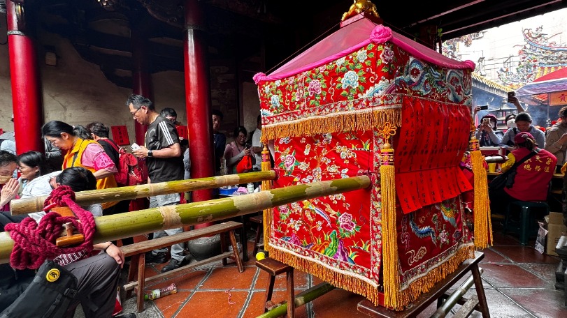 轎頂粉紅色帆布主要是萬一中途遇到下雨,可以將帆布放下遮雨,保護神轎,楊登嵙說,選用柔和的粉紅色凸顯媽祖慈悲心,回鑾間會把神轎粉紅色帆布放下,也是為了保護靈力不外漏及避免干擾,這樣的形式和顏色是自古傳承到現在。