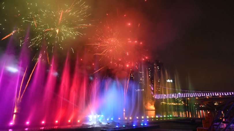 侯友宜指出,活動即日起至7月6日,連續44天,每晚共6場水舞展演,還有限定的驚喜煙火秀,歡迎民眾闔家一起「樂享碧潭」,感受光影水火的極致魅力。
