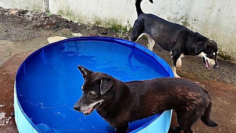 除了利用設備的降溫方式,各動物之家志工與動保員們也會想出各種方式幫毛寶貝們消暑,例如淡水動物之家位於海邊,日照曝曬較強,志工們會貼心地為毛寶貝準備戲水小泳池,讓狗狗們玩水降溫,濕漉漉的狗狗們會興奮地把水甩到志工身上再雀躍的跑走,狗狗在夏日盡情奔跑、互相玩耍不亦樂乎。動保員說像這樣打水戰是淡水動物之家的夏日日常,因為藉由這樣的團體活動,有些本來畏懼、害羞的狗狗,性情會更快變得開朗且親人,除了暑氣全消也能紓壓幫助狗狗社會化,一舉兩得進而提升認養率,讓收容的毛寶貝們早日有一個家。