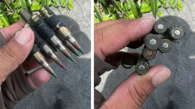 有嘉義民眾日前在海邊撿到機槍子彈,通知相關單位後,國軍相關單位否認是他們的物品。網友紛紛調侃,難道是黑道在「試槍」留下來的嗎?