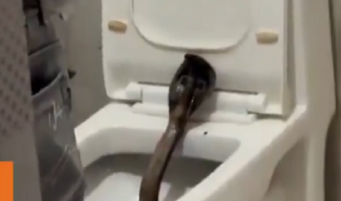 印度一間知名飯店近日發生驚悚事件,一名遊客在2樓廁所發現一條長達1.5公尺的眼鏡蛇盤踞在馬桶內,這條毒蛇在感應到有人接近後立即進入防衛姿態,不斷發出嘶嘶聲警告,畫面在網上曝光,令不少人都感到不寒而慄。