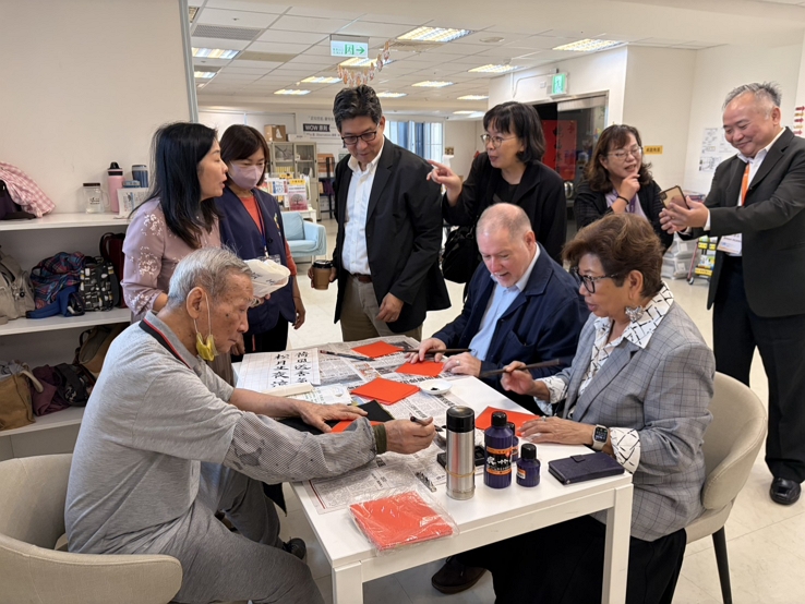 自108年12月起,「銀色知悠生-蒙特梭利中心」由新北市社會局委託台灣認知功能促進協會營運,融合蒙特梭利理念,打造一個讓長輩自主學習、互動、重拾生活節奏的溫馨空間。參訪當天,長者們正在參與書法活動,Rick博士也興致勃勃地加入體驗,笑說:「中文字真是優美!」他表示,這樣的課程不僅激發專注力,更讓長者感受到被尊重與價值感。