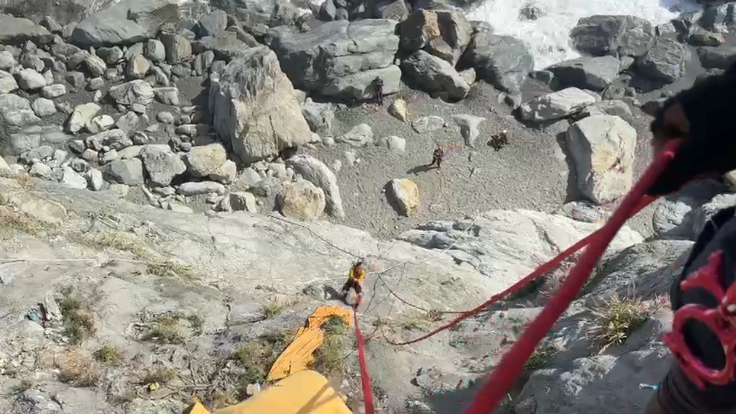 另有同行4名遊客受困於下方約50米深海灘,本局警義消同仁垂降後使用繩索技術協助上拉至路面脫困,於12點48分左右脫困完成,給予傷口包紮後離開現場,交由海巡進行後續處置。