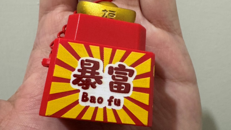 兩人分工合作,一人負責刮、另一人不停按招財吊飾按鈕,店裡瞬間充滿灑金幣與恭喜發財的招財音效好不熱鬧,刮到第二張時,伴隨著喜氣音效響起,兩人現場一陣驚呼,原來是刮出100萬元獎金!兩人笑說「暴富」招財小物實在給力!