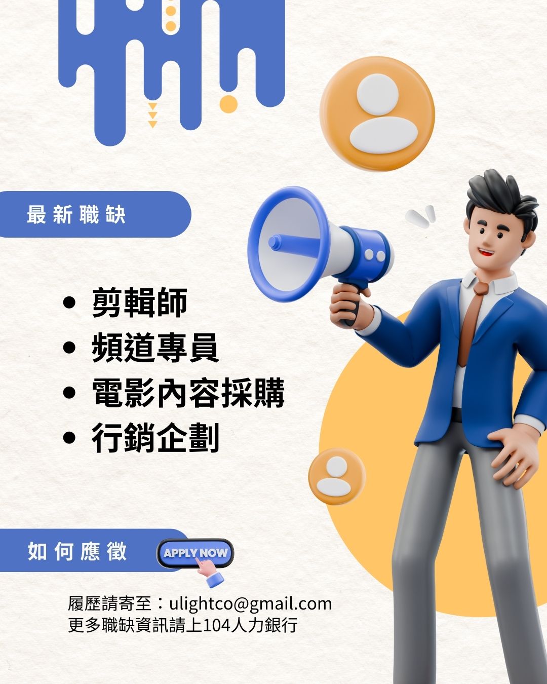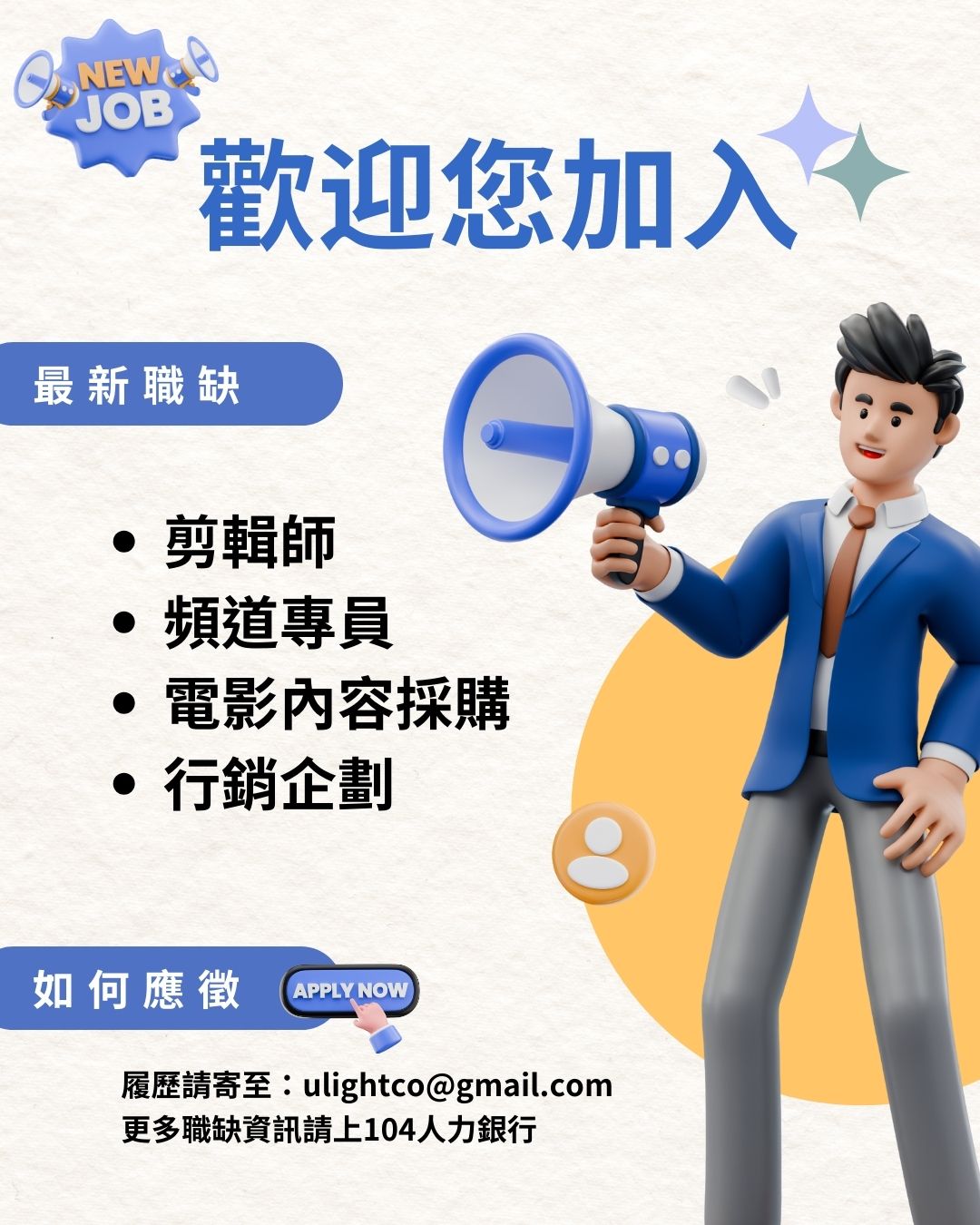 最新徵才資訊,請至104 人力銀行
